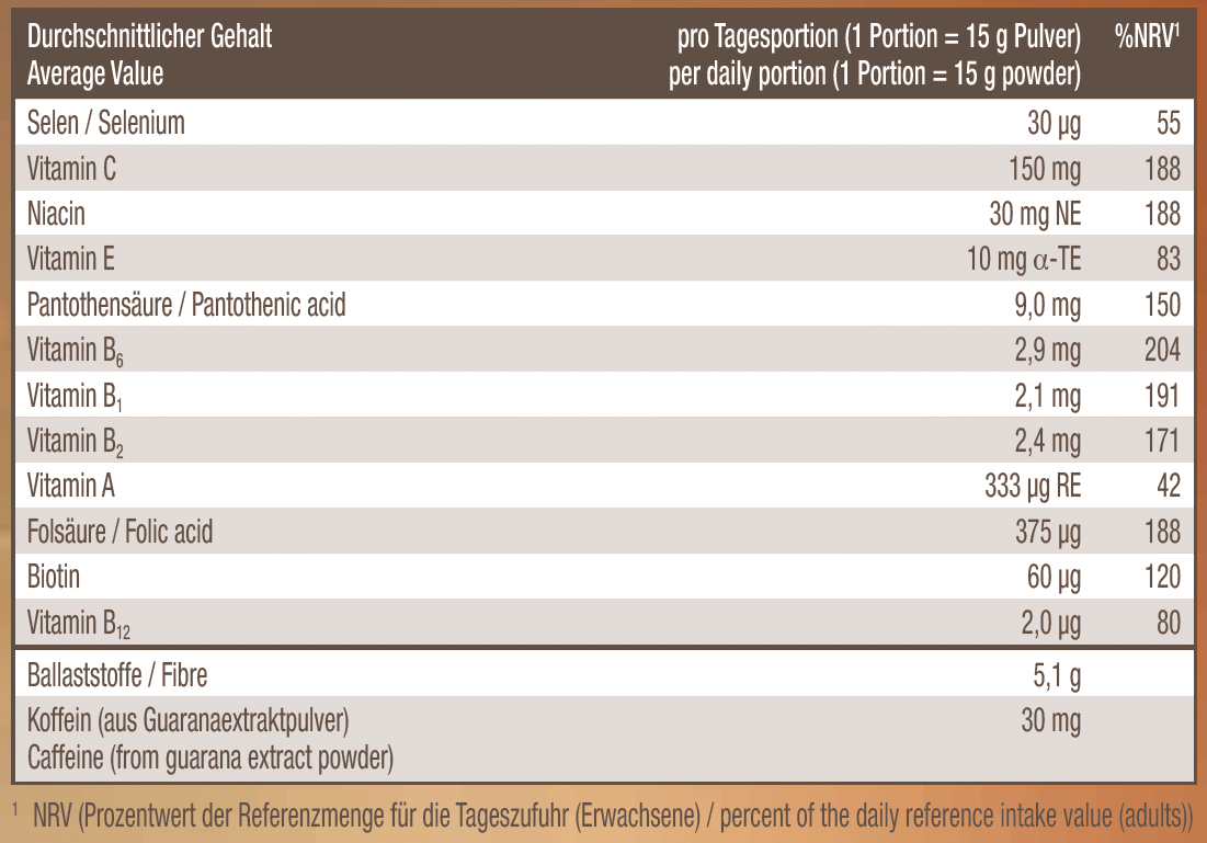 FitLine PowerCocktail conține, de asemenea, doza ta zilnică de fibre naturale și pre și probiotice sub formă de bacterii acide active vii (L. reuteri, L. acidophilus). Acest lucru îl face un produs complet de inclus în rutina ta de dimineață.